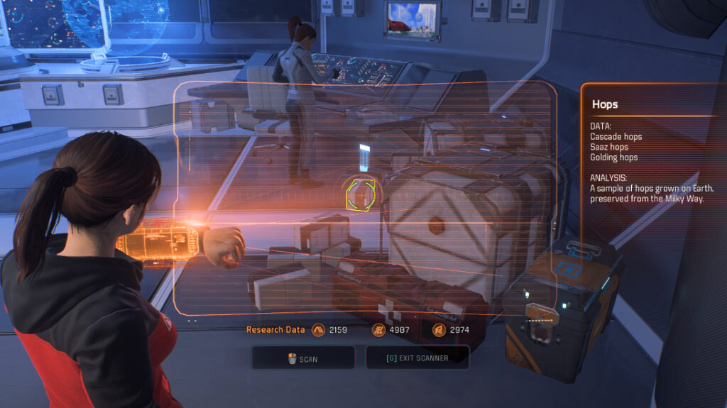 It’s almost entirely absent from the original Mass Effect triology,5 though. Set in a similarly-timed but very different future to Fallout’s, this was a galaxy-spanning space opera where exotic alien alcohol-equivalents are mentioned occasionally but I get the impression maybe they felt that beer would be too grounded, too jarring a contrast. That is, until you play Citadel (2013), its last piece of bonus content, which slots into the timeline just before the climactic final battle. You and your crew get some downtime, throwing a party which serves as a nice epilogue to a lot of story threads from the saga, with — among other drinks, familiar and fictional — plenty of beer that looks a lot like Stella Artois. Then, in the (I think) unfairly-maligned follow-up Mass Effect: Andromeda (2017) there’s a side-quest that tasks you with looking for ingredients to improve everyone’s drinks, and thereby their morale, after a rough start in a new galaxy — beginning with a missing crate of hops from home.